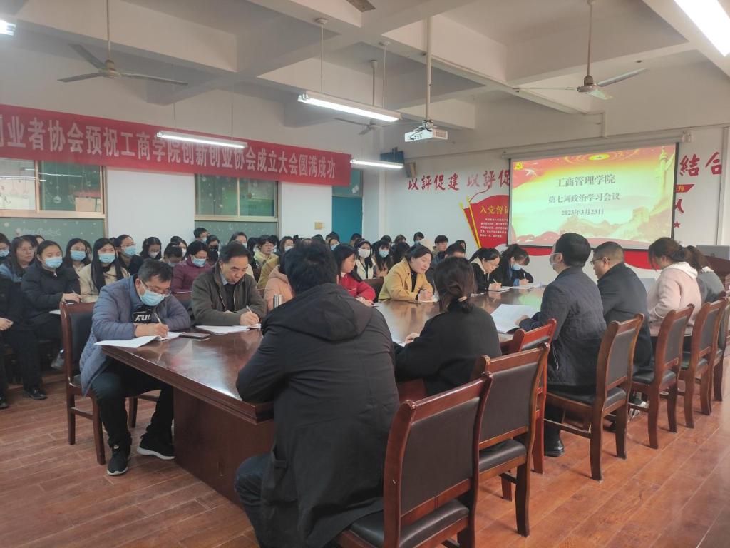 3月23日下午,我院在2号教学楼二楼会议室召开2022-2023学年第二学期第七周政治学习专题会议,我院院长杨松柏、党委书记宋森及全体无课教职工参加会议。