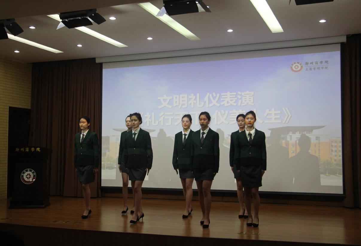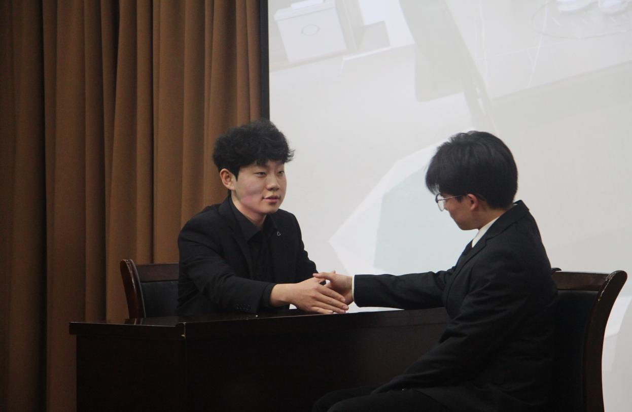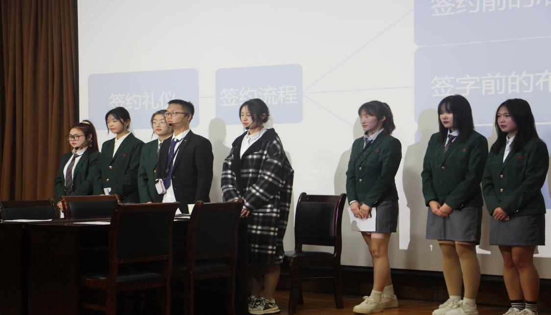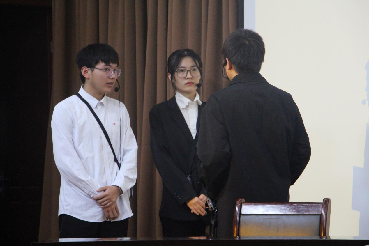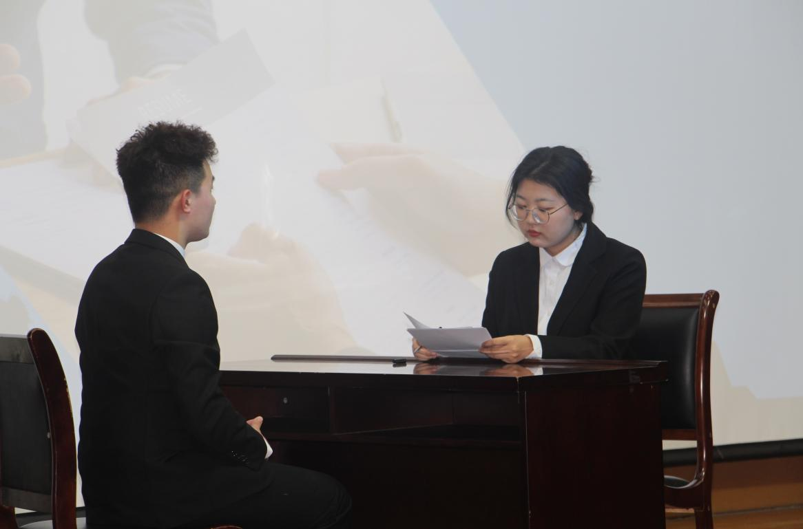 七组选手结束表演后,工商管理学院艺术团话剧队成员也进行了商务礼仪情景剧表演,都赢得了在场嘉宾、评委和观众们的阵阵掌声。