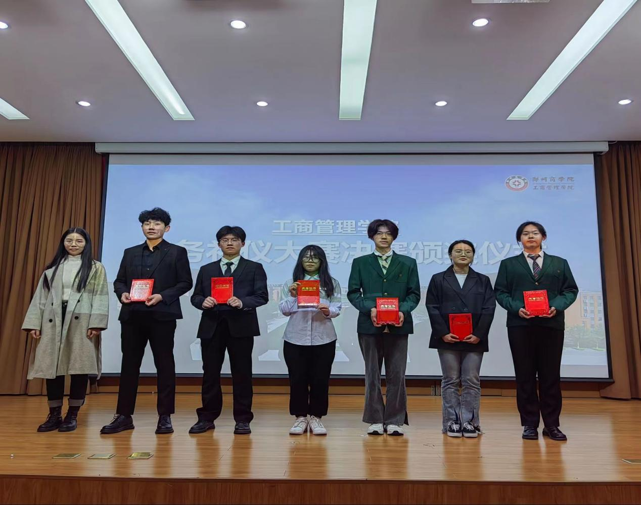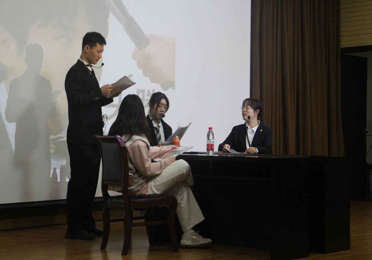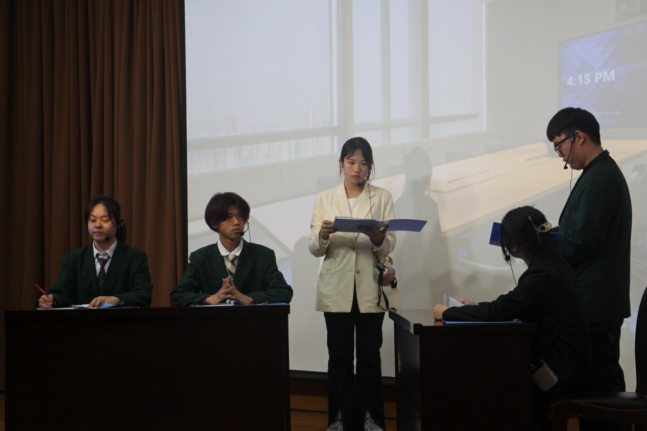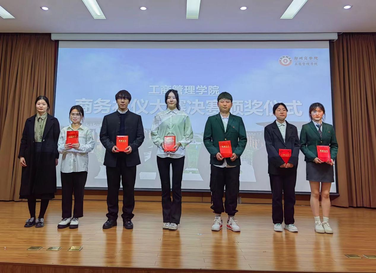 七组选手结束表演后,工商管理学院艺术团话剧队成员也进行了商务礼仪情景剧表演,都赢得了在场嘉宾、评委和观众们的阵阵掌声。