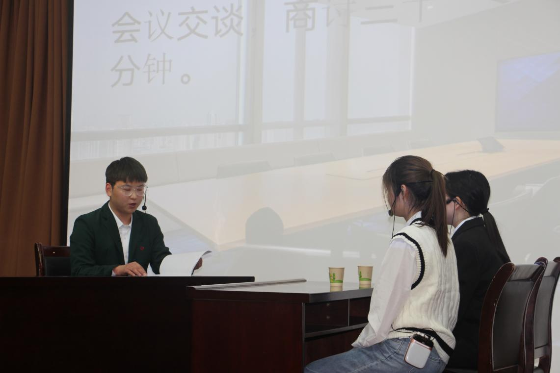 经过前期激烈的角逐,选手们凭借自己出色的礼仪知识储备,进入了最终的决赛阶段。参赛选手们分成了七个小组,按照顺序依次上台进行表演。各组选手准备充分,神采奕奕、齐心协力生动地演绎了面试、会议、办公室、电话、握手、来客接待、商务礼仪谈判七种特定场景下的商务礼仪,展示了各自队伍优秀的商务礼仪技巧。让我们来回顾一下各组的精彩表演吧。