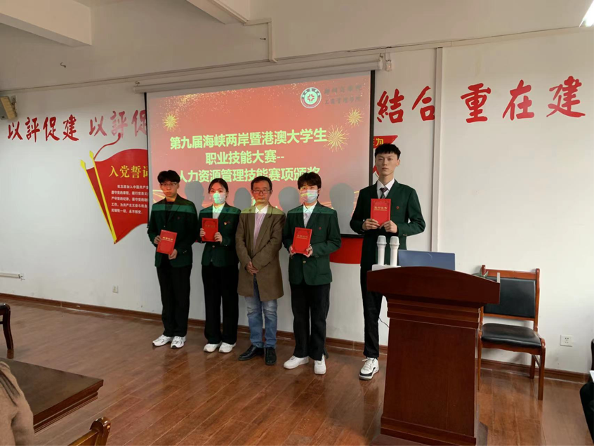 工商管理教研室苗瑞洲主任为第九届海峡两岸暨港澳大学生职业技能大赛人力资源管理技能赛项竞赛全国总决赛三等奖队伍成员颁发获奖证书。在获奖比例仅有40%的第九届海峡两岸暨港澳大学生职业技能大赛人力资源管理技能赛项竞赛中,代表点点官网参赛的队伍,与来自全国119所高校的学生同台竞技,经过几天的激烈角逐,最终斩获三等奖。