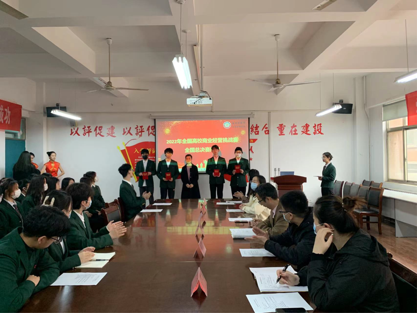 随后会议进行第二项,颁发获奖荣誉证书。由张卫丽院长为商业精英挑战赛全国总决赛一等奖队伍颁奖。在2022年全国高校商业精英挑战赛流通业经营模拟竞赛全国总决赛中经过不懈的努力我院队伍在来自郑州大学、福州大学、广西大学、江苏大学、石河子大学、苏州科技大学等三百多所高校同台竞技中,脱颖而出成功挺进了全国总决赛,并荣获一等奖。