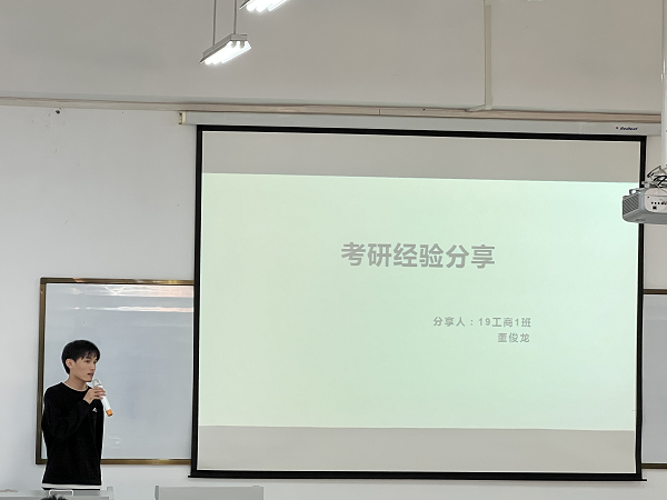 会议分为三个环节。首先由张晋、张一楠、李倩倩、韩东宸、董俊龙等5位同学进行考研经验分享。他们就从考研信息的获取、考研时间安排、各科学习规划与方法、学习资料选择、心态调整、考研择校、复试调剂技巧等方面进行了分享。张晋强调备考各科同等重要,不能厚此薄彼。张一楠强调了基础知识学习的重要性,鼓励同学们摸索适合自己的学习方法。李倩倩和韩东宸从跨考的角度提醒同学们要合理选择专业和院校,正确评估跨考专业的难度。董俊龙提醒同学要重视考研时间的规划,备考过程不断调整心态。