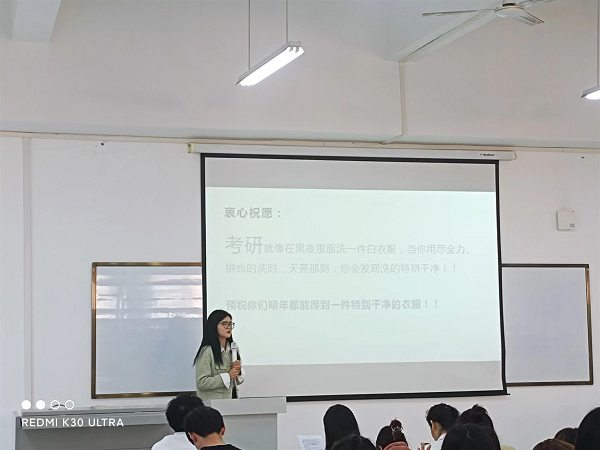 最后,副院长张卫丽做总结讲话,她首先肯定了同学们在考研路上做出的努力并希望读研过程再创佳绩,同时鼓励大家以学长学姐为榜样,做到“目标要远大,择校要客观,学习要努力,身体要健康,成功属于你”,并预祝大家都能进入更高的学习殿堂!