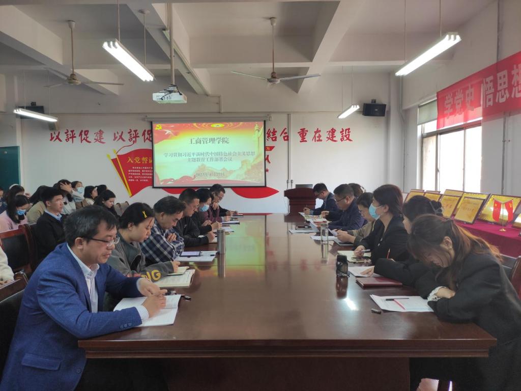根据学校学习贯彻习近平新时代中国特色社会主义思想主题教育工作安排,4月27日上午,工商学院在2号教学楼二楼会议室召开学习贯彻习近平新时代中国特色社会主义思想主题教育工作部署会议,工商学院院长杨松柏、副院长张卫丽及全体教职工党员、学生党员代表参加会议。