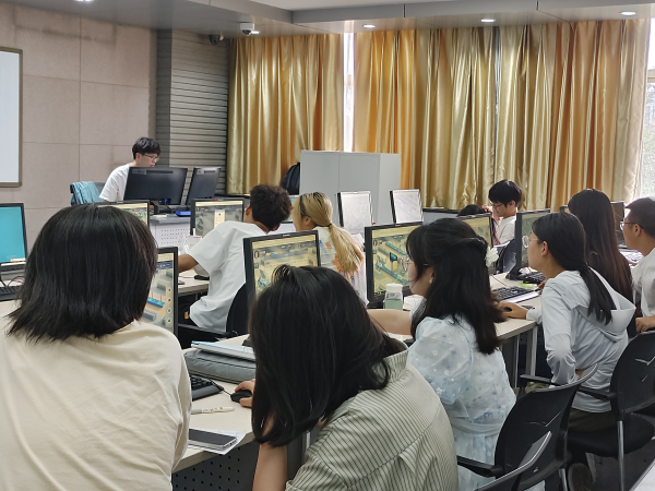 工商学院学生数智化企业经营沙盘大赛训练现场图