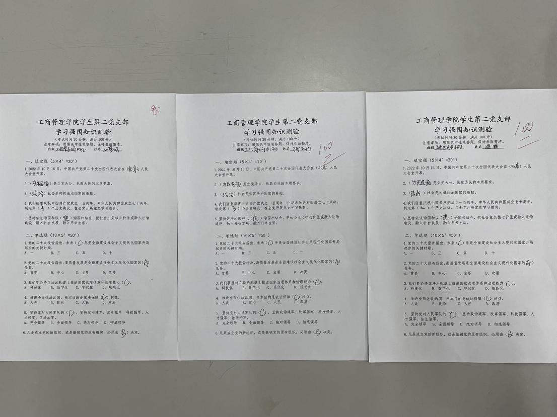 为深入贯彻党的二十大精神,扎实抓好学习贯彻习近平新时代中国特色社会主义思想主题教育,检验主题教育学习效果,巩固学习成果,增强自身政治文化修养,引导学生牢记习近平总书记的嘱托,成为担当民族复兴大任的时代新人,5月29日,工商学院学生第二党支部在2201教室开展了学习强国知识测试活动。