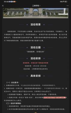 工商学院通过在教学楼LED屏滚动播放宣传标语,在学院公众号发布推文等方式及时发布消防安全相关内容,及时普及消防安全知识,并利用QQ群、微信群等媒介加大对相关知识的普及及宣传,营造浓厚的消防安全教育宣传氛围,进一步推动消防安全教育宣传。结合“无烟校园”专项治理活动,进一步将消防安全意识深入人心,降低火灾风险。