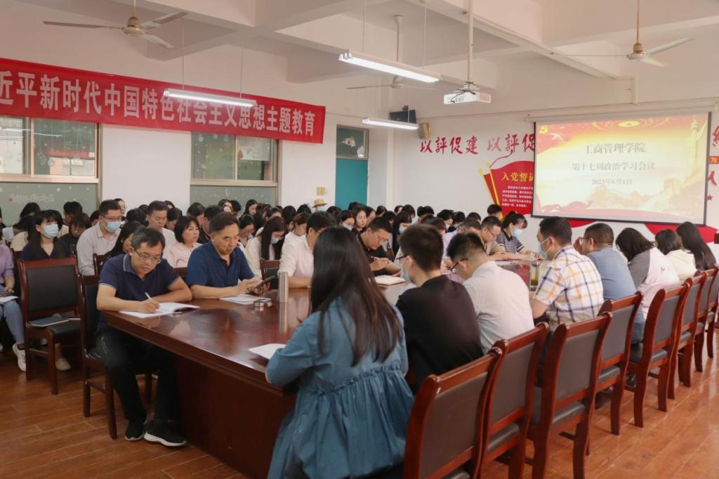 6月1日下午,我院在2号教学楼二楼会议室召开2022-2023学年第二学期第十七周政治学习专题会议,工商学院院长杨松柏、党委书记宋森及全体无课教职工参加会议。