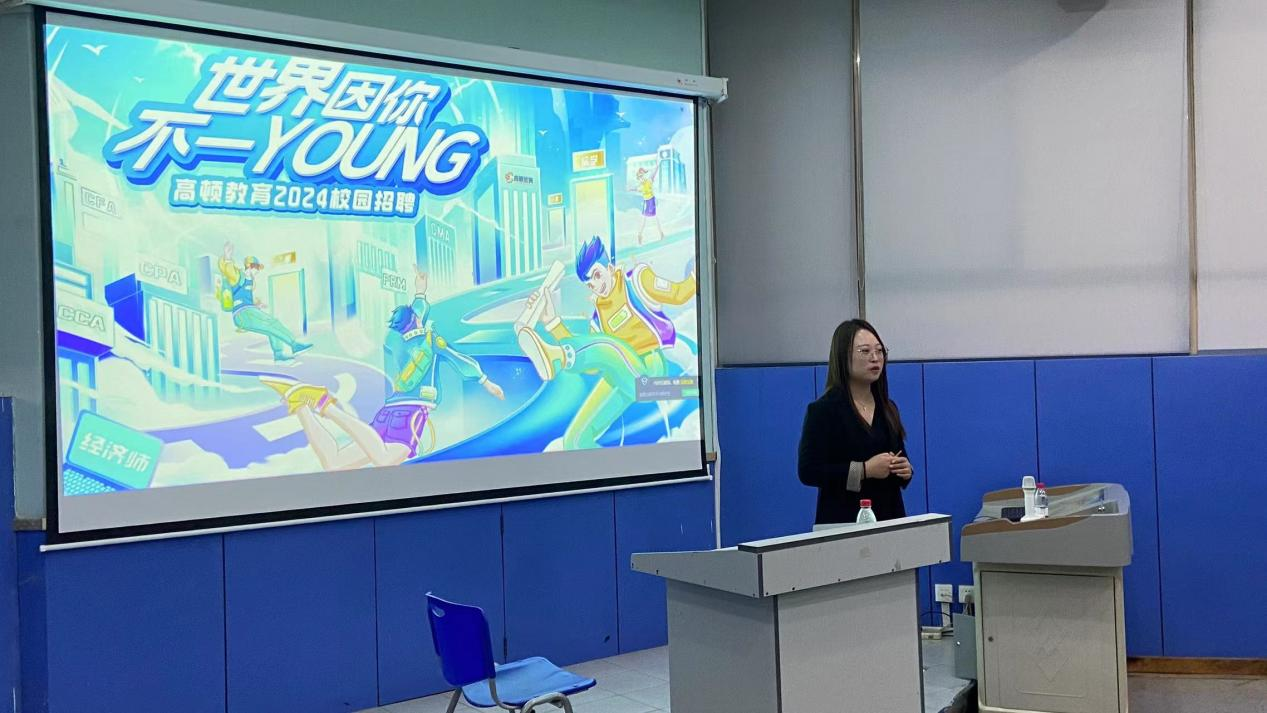 为确保2024届毕业生就业工作稳步推进,全力助推毕业生更充分更高质量就业,10月18日下午,管理学院邀请高顿教育集团在2号教学楼116招聘室举办专场宣讲会。