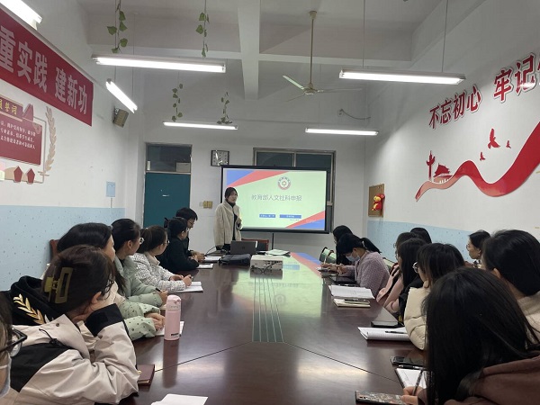 本次交流会由邓一平老师进行分享,邓老师结合自身2023年教育部人文社科青年项目的立项经验,从理论和实际应用价值、国内外研究现状趋势、研究目标、研究内容、拟突破的重难点、研究思路六个方面进行了分享,内容丰富,层次分明,为各位老师的申报书撰写梳理了思路,明确了目标和任务。随后张倩丽老师针对教育部人文社科一般项目的申报要点进行了强调,鼓励中青年教师积极地展开尝试。最后,各位老师展开积极的讨论,提出了项目申报过程中的疑问,邓一平老师进行了一一解答。