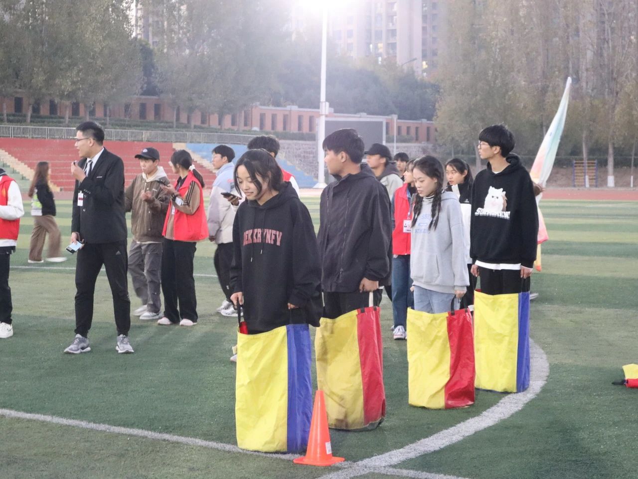 袋鼠跳比赛中更是妙趣横生,参赛者们用蹦蹦跳跳的身影,使整个赛场充满欢声笑语,其实可爱的不止是他们穿上装备的模样,还有他们为班级出征的勇气。
