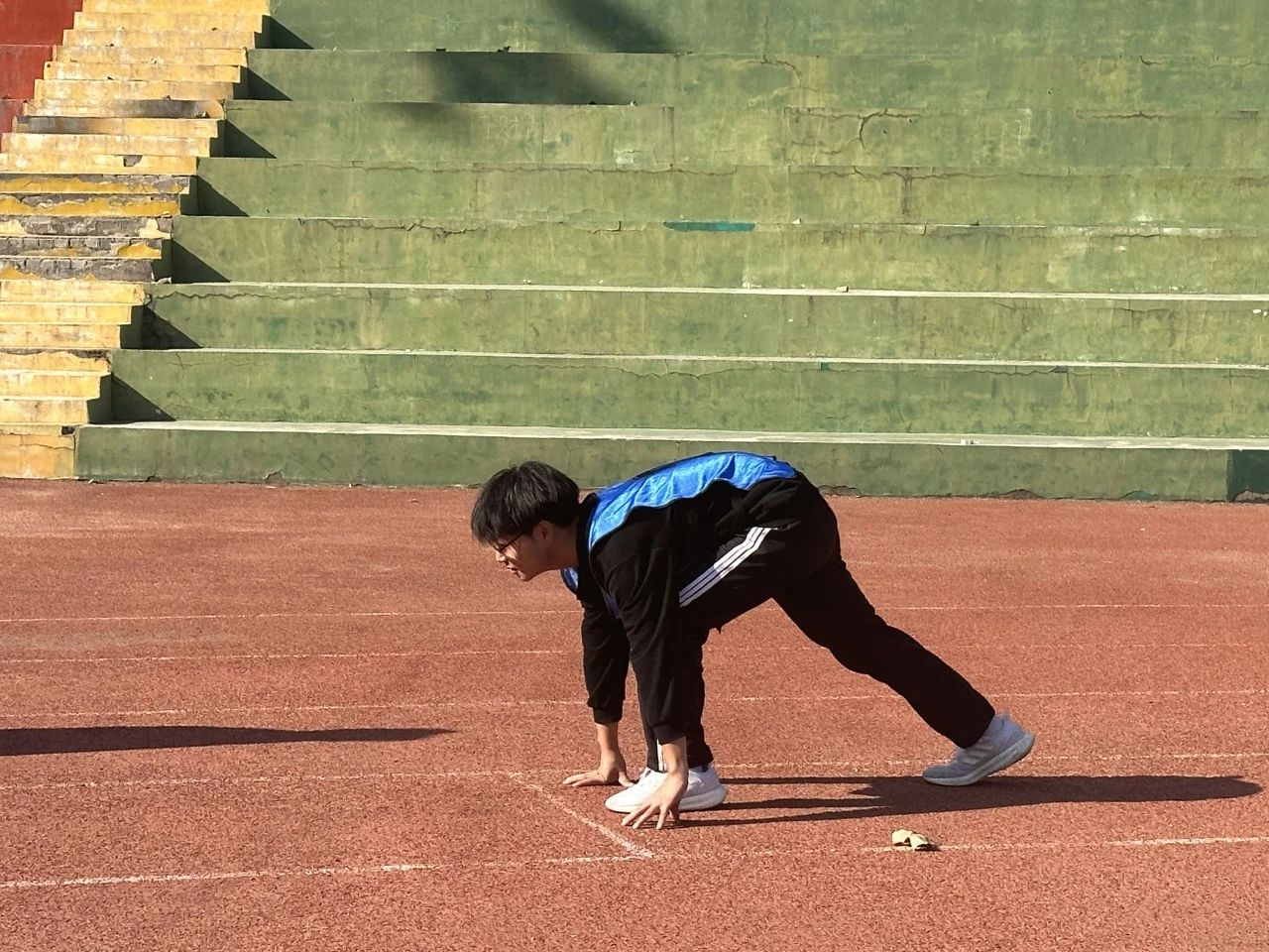 在径赛中,运动健儿们静心凝神、心无旁骛、蓄势待发,一声枪响,他们似离弦的箭,全力奔跑,伴随着呐喊声与掌声,迈着矫健的步伐冲刺终点,去迎接属于他们的胜利。