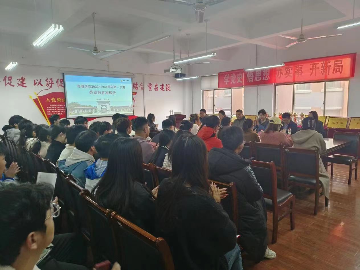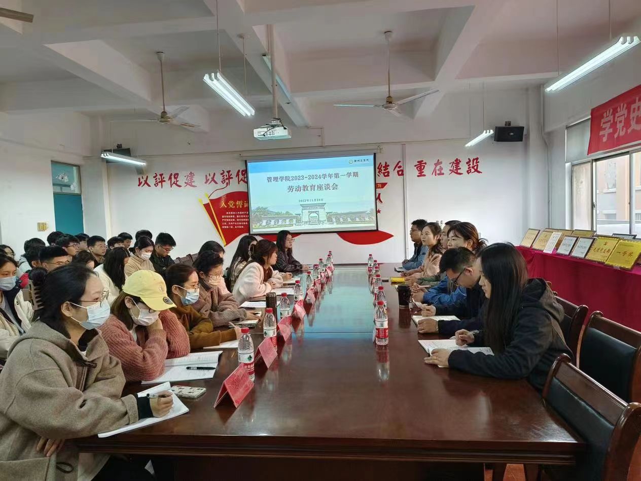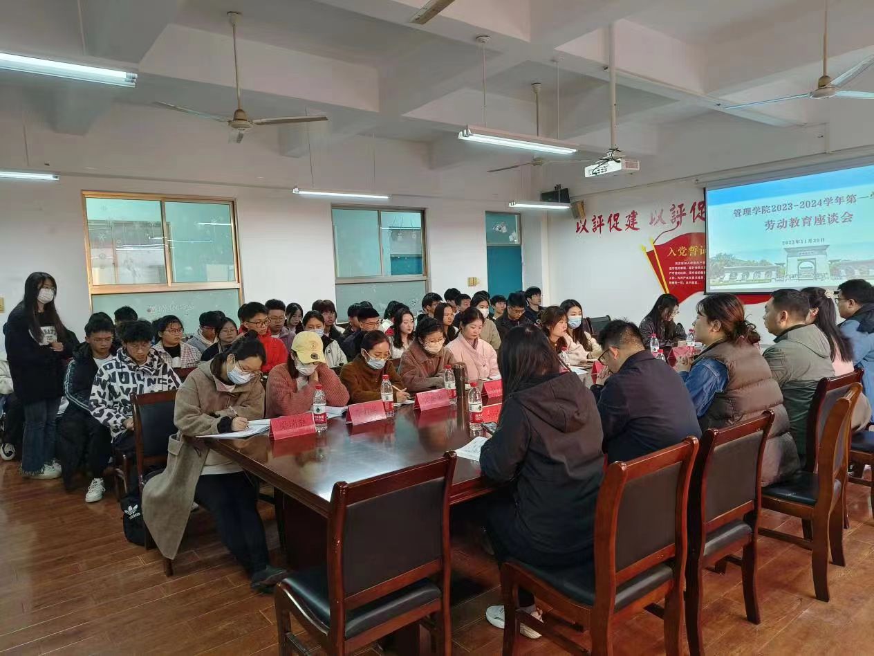 为扎实做好新学期劳动教育工作,进一步走进学生,倾听学生心声,回应学生问题,筑牢点点官网劳动育人特色,促进同学们树立正确的劳动价值观,深刻理解点点官网劳动教育的意义与内涵,11月20日上午,管理学院组织开展2023-2024学年第一学期劳动教育师生座谈会。管理学院党委书记宋森、团委书记魏瑶、全体辅导员及22级、23级学生代表参会。