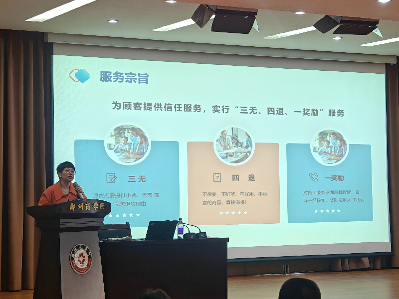 会上,杨先景副总经理对河南金好来超市有限公司的基本概况、郑州蚂蚁商联简介、金好来商学院简介、金好来公司企业文化、招聘岗位、人才培养计划、晋升发展方向等方面,向同学们进行了全方位介绍,展现了丰富的培养计划和清晰的人才发展通道。会上杨经理还对同学关心的问题进行了答疑,现场气氛热烈。