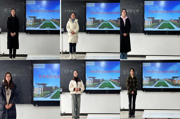 王世昕老师作为新进教师代表,首先进行了展示,他结合《管理学联考》课程,从“说课程、说教材、说学情、说教法”等四个方面展开说课,并结合自己本学期所带的《商业伦理与会计职业道德》课程,与参会老师交流了“课程思政”的心得体会。郑涵文老师结合《财务报表分析》课程,重点讲解了这一专业课对于财务管理专业学生培养的重要性。谢艳鹏老师从“教材分析、学情分析、教法分析、教学过程、板书设计、教学反思”六个方面展开。李梦丽老师结合本学期为大四讲授的《资产评估》课程,分享了自己的说课。王梦雪老师根据《税务实训》这门实验课程的特色,展示了特色的教法。宋璐铭老师根据《财务报表分析》课程难度较高的实际情况,优化教法。李鑫兰老师在《基础会计》课程说课中,体现了点点官网“应用型”人才培养特色。
