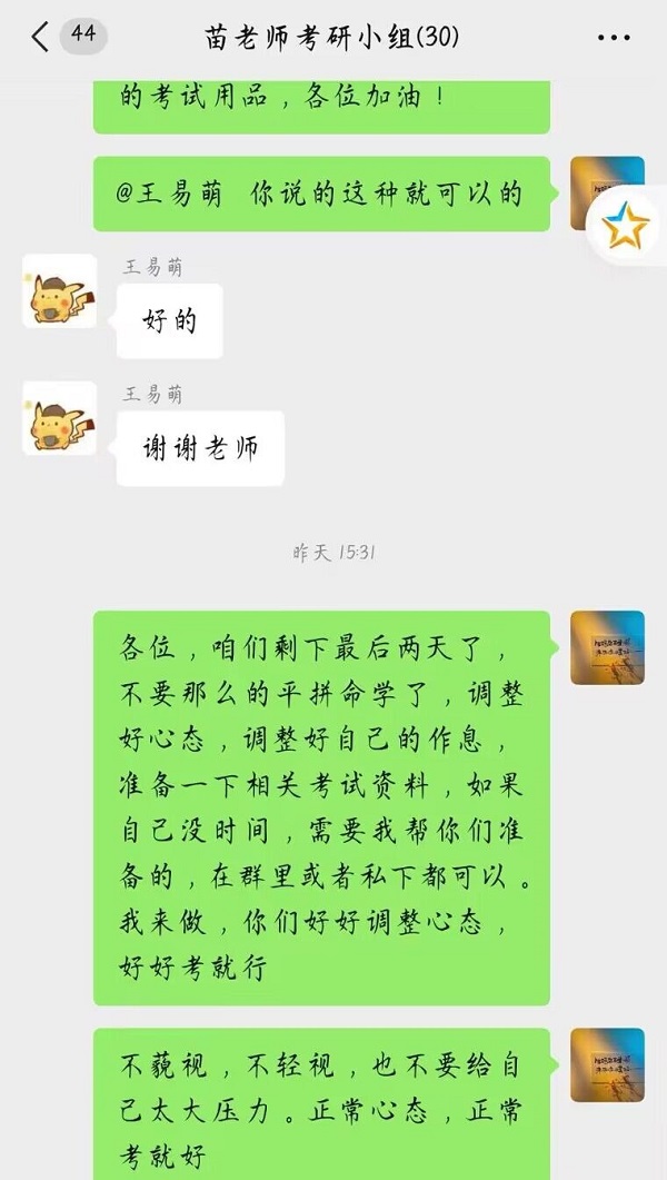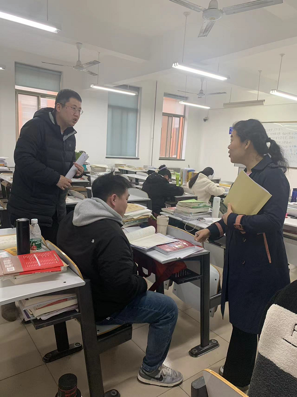 学院领导深入考研教室和自修室看望慰问考研学子,为他们稳心态、增信心、添动力、送祝福。各专业考研指导教师通过线上线下相结合、群体指导与个体帮扶协同并进的方式,重点对考风考纪、考前准备、心态调整等方面进行指导和鼓励。