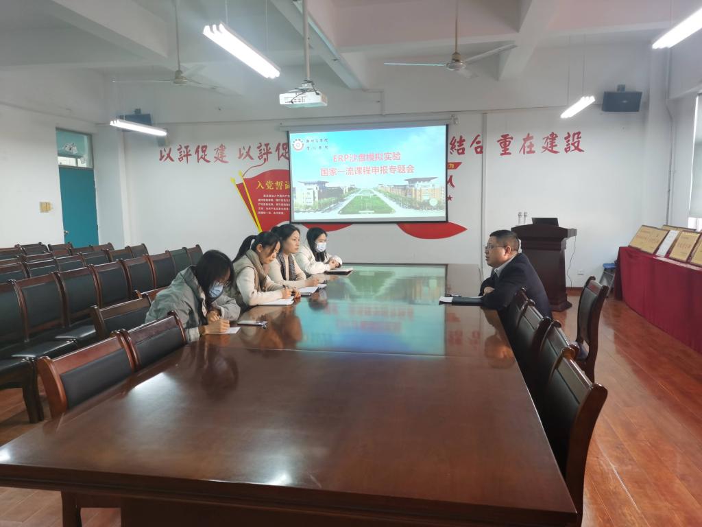 为推进学院课程建设,进一步做好第三批国家一流课程申报工作,管理学院于12月25日在2206召开了关于《ERP沙盘模拟实验》国家一流课程申报专题会,ERP教学团队全体教师参与,会议由管理学院院长杨松柏主持。
