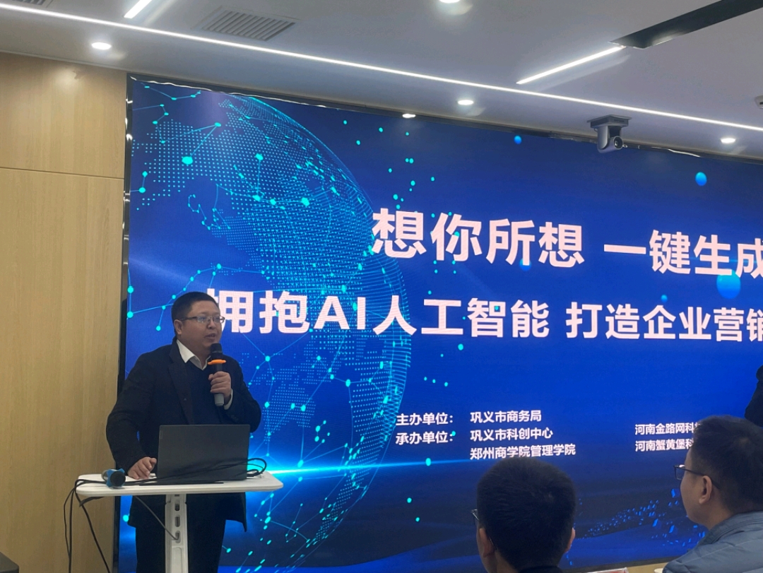 12月28日下午,由巩义市商务局主办,我院与巩义市科创中心联合承办的“AI人工智能打造营销新模式论坛”在巩义市科学技术创新中心路演厅举行。我院杨松柏院长,巩义市科创中心吴娟主任,我院28名专业教师,以及巩义市各行业企业家代表共同参加了此次论坛。