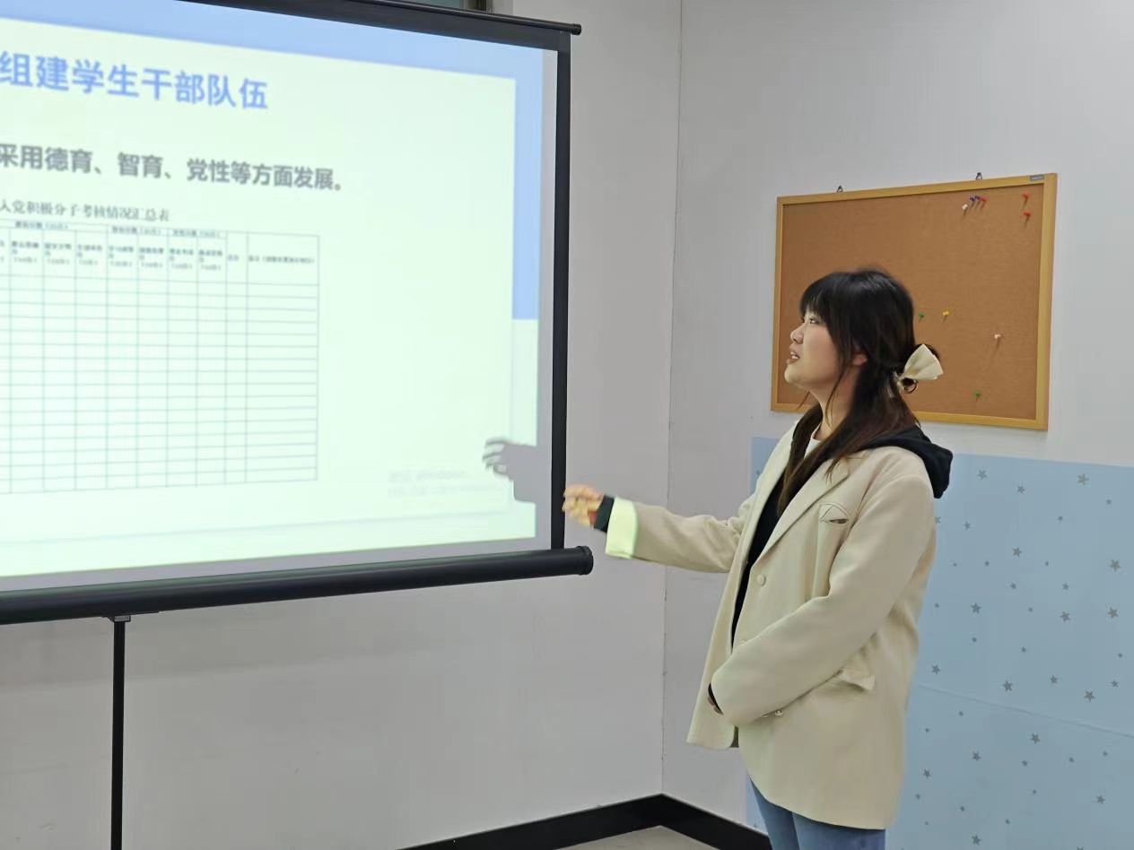 她主要分享了学生干部培养的心得,分别围绕学生干部队伍选拔、培养和发展工作等方面展开讲解,通过具体案例分析如何带领学生干部做好自我管理、自我教育、自我服务、自我监督,引导学生干部充分发挥主观能动性。