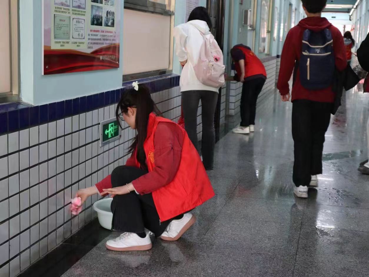 活动期间,志愿者们对2号教学楼的办公室、会议室、教室、楼道进行全面打扫。重点关注每个卫生死角,从饮水机里、暖气片下到墙壁死角,每个角落都进行整理,从细节入手,从小事做起。