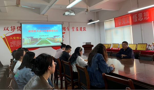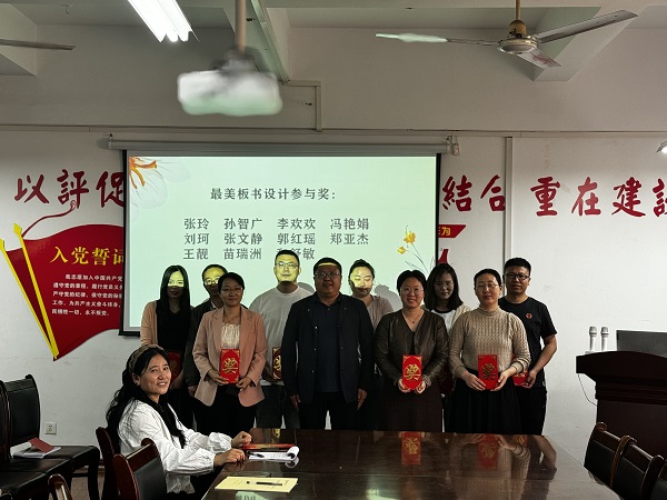 经过公开投票,郭清琳老师荣获工商管理教研室“最美板书设计奖”,11名老师获得“最美板书设计参与奖”,杨院长对各位老师表示祝贺并颁奖,鼓励各位老师再接再厉,潜心育人。