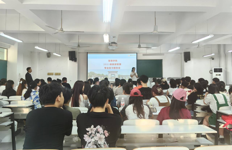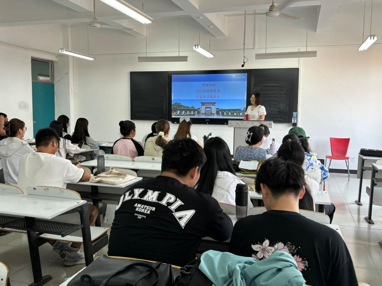 为切实推进2021级学生校外专业实习工作有序开展,明确实习安排、要求和方向,进一步提高学生的综合素质和实践能力。5月15日下午,我院旅游管理专业召开2021级全体学生实习动员大会。王彦青主任、郝冰冰老师、李国谨老师从导游词分配与讲解、沟通技巧、实习纪律、人身安全等方面,对即将奔赴专业实习的各班学生进行了系统培训,确保同学们高质量完成专业实习。同时还对同学们提出了殷切期望,希望大家能够充分发挥自己的专业优势,将所学的理论知识与实践紧密结合起来,学以致用,在实习中砥砺自我、增长才干。