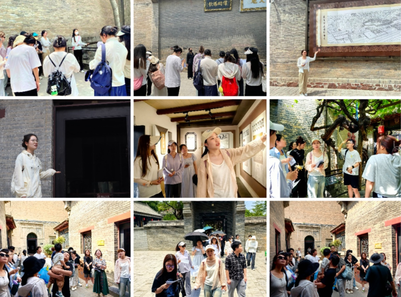 实践出真知,12点半,全体师生展开康百万庄园的实地讲解,三个班学生分三个团队,实地模拟导游团,将理论知识应用于实践。王彦青老师带领21旅管1班学生从栈房区出发,李国谨老师带领23旅管专升本1班学生从主宅区出发,郝冰冰老师带领23旅管专升本2班学生从南大院出发,错峰讲解。在讲解过程中,学生依次扮演导游角色,对相应景点展开实地讲解,要求所看内容与讲解同步,真切感受导游讲解工作,将课堂搬入景区,检验学生的学习效果。学生声情并茂地讲解,吸引了来往康百万庄园游览的游客,学生的自信和热情获得了游客的称赞,完成了属于旅游管理专业学生具有实践意义的真正课堂。