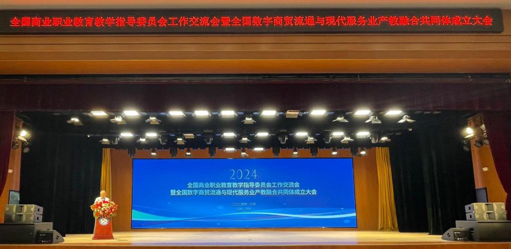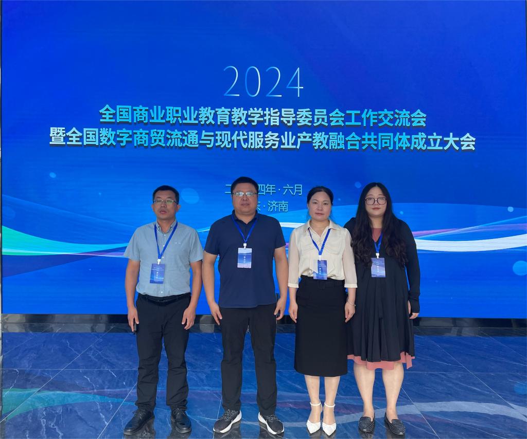 6月15-16日,全国商业教育教学指导委员会工作交流会暨全国数字商贸流通与现代服务业产教融合共同体成立大会在山东济南隆重召开。会议旨在推动商贸流通服务业在数字经济时代下转型升级,加速产教融合,深化校企合作,培养高素质技术技能型人才。全国商业教育教委常务副主任马广水、对外经济贸易大学校长赵忠秀、山东商业集团有限公司党委副书记张洪东、山东省教育厅总督学王志刚等领导,全国各省(区、市)多所本科院校、高职院校和龙头企业代表参加会议并发言交流,共同探讨如何以产教融合高质量发展推动数字经济商科教育走在前列。我院院长杨松柏,以及骨干教师张玲燕、刘法权、李姗姗一行受邀参加会议,同时我院荣幸当选为全国数字商贸流通与现代服务业产教融合共同体常务理事单位。