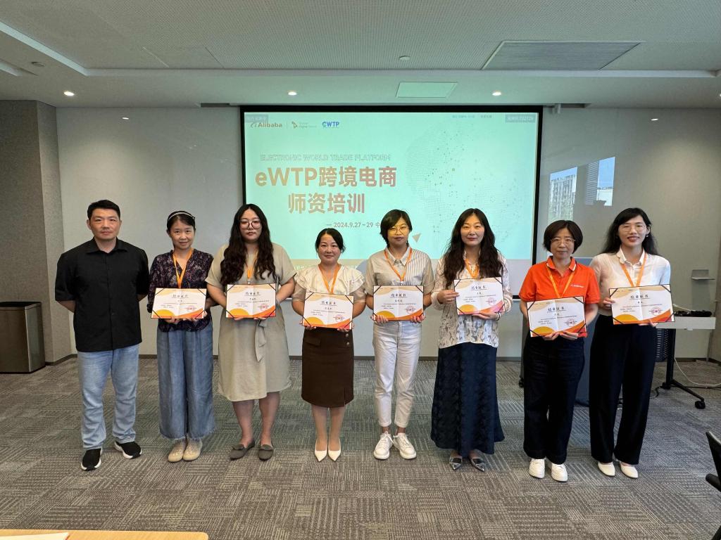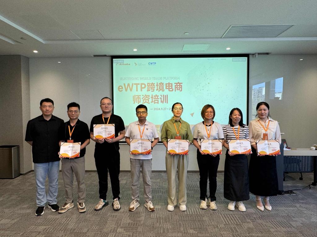 为落实我院市场营销、工商管理等传统专业进行重塑升级,聚焦“课程、师资、资源、测试、成效”等关键要素,有规划、分梯次、有重点地进行学科专业内涵建设,强化师资实践教学能力,拓展产教融合资源,了解跨境电商人才前沿动态,为学科专业内涵建设、产教深度融合、大数据商业智能实训中心建设等积累经验。2024年9月26-29日,由中国(杭州)跨境电子商务综合试验区建设领导小组办公室、阿里巴巴全球数字人才教育联盟主办的2024eWTP跨境电商师资培训在杭州阿里巴巴西溪园区会议室举行,本次培训以“新质生产力发展背景下电商人才培养与学科建设”为主题,面向国际商务、市场营销、电子商务等新商科专业集群,围绕电商创新发展与人才培养、品牌跨境与产教融合创新、产业学院建设等议题进行培训与研讨,来自全国多所高等院校的30多名骨干教师参加培训,我院市场营销教研室主任张玲燕、李姗姗两位老师参加了此次培训并获得培训证书。