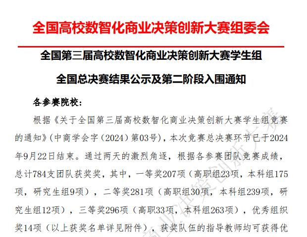 本次大赛取得的优异成绩,不仅展现了我院学子扎实的理论基础和出色的实践能力,更体现了他们在数字化时代背景下的创新思维和决策能力。通过参与这样高水平的全国性竞赛,我院学生得以将课堂所学知识与实际商业环境紧密结合,在数字营销、智能生产、精准推广等现代商业模式中磨炼技能,提升了数智化时代的商业洞察力和战略思维。这不仅为他们未来在快速变革的商业环境中立足打下坚实基础,也彰显了我院在培养具有创新精神和实践能力的高素质人才方面取得的显著成效。未来,我院将继续深化产教融合、校企合作,持续充分发挥以赛促教、以赛促学的人才培养模式,提升数智化人才培养的质量。
