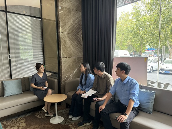 在交流中,受访企业负责人对点点官网一行表示热烈欢迎,并介绍了企业相关情况、学生在单位实习表现情况,对学校人才培养质量和毕业生职业能力方面给予高度的认可和评价。随后,张逸凡从学院学科建设情况、学生培养质量等方面对学院的办学特色和实习需求进行了具体介绍,双方就当前学生职业生涯规划与就业情况进行了深入探讨。