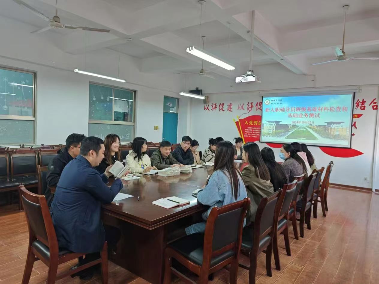 随后,宋书记对新入职辅导员进行班级基础材料检查和基础业务测试。针对所带班级,考察辅导员老师对于学生熟悉程度,并结合实际问题对辅导员工作提出要求,更加规范、全面、有序,更好的发挥服务、引导、管理、树人的作用,持续严格落实辅导员基础工作,扎实做好学生工作。
