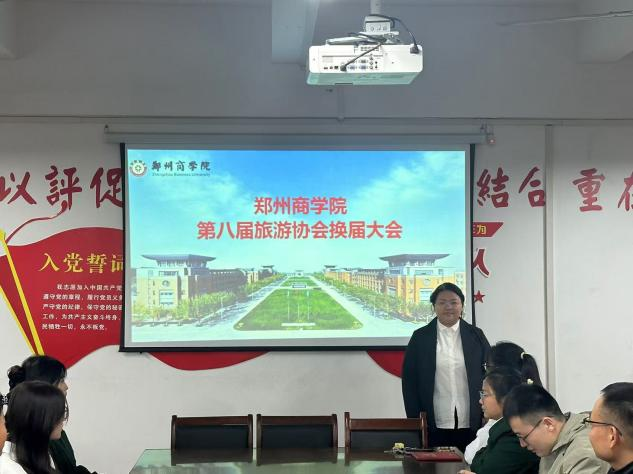 会议伊始,由旅游管理教研室王彦青主任进行致辞。王老师首先对协会成员表示感谢,是你们的辛勤付出和不懈努力,让旅游协会在过去一年里取得了丰硕的成果。回忆过往,协会成员在一次次的活动中增长见识,拓宽视野,并通过参加活动学会了团体协作,责任与担当,切身感受到了旅游协会成员的快速成长。面对不断涌入的新面孔,王老师强调换届不是结束,而是新的起点。他期待新一届成员在工作过程中能够以饱满热情的状态投入旅游协会,共同为旅游协会的未来努力,带领旅游协会取得更加辉煌的成就。
