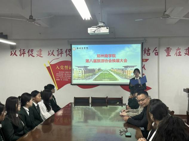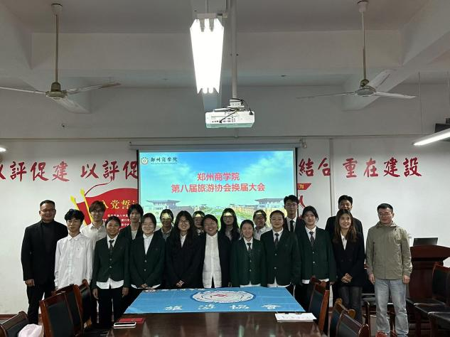 会议还进行了旅游协会会旗交接仪式。在全体成员的见证下,第七届旅协成员代表以昂扬的精神面貌,将承载着社团荣耀与精神的旅游协会会旗,传递给第八届成员代表。会旗的交接,不仅是责任的接力,更是梦想与希望的延续,是协会各成员对协会未来华丽篇章的美好期待。