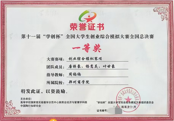 由高等学校国家级实验教学示范中心经济与管理学科组主办的第十一届“学创杯”全国大学生创业综合模拟大赛全国总决赛于11月1日-11月3日在徐州医科大学举行,经过激烈角逐,我院两支代表入围参加了本次比赛,且均取得全国一等奖的优异成绩。