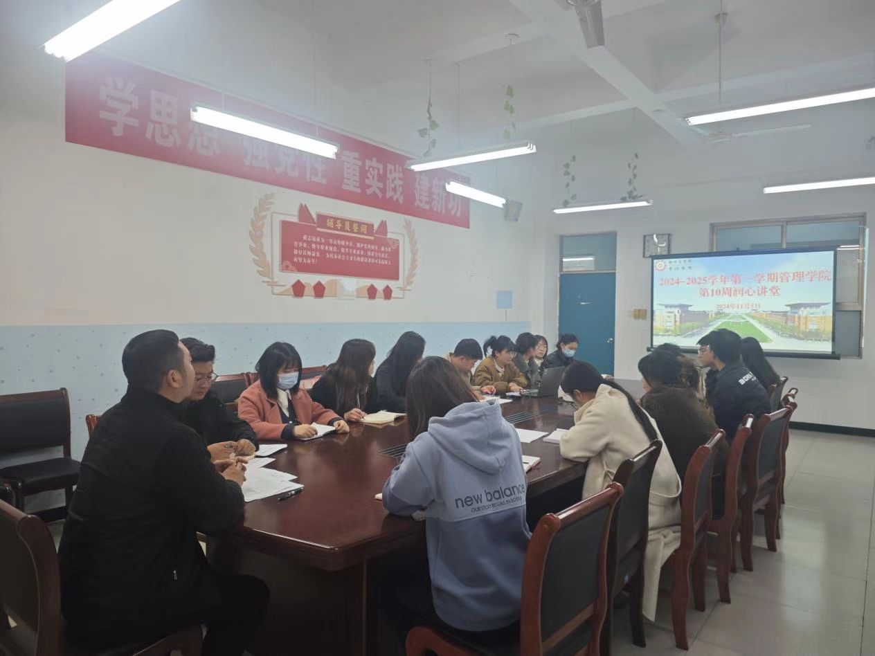 11月5日下午,管理学院召开2024-2025学年第一学期第10周学务例会,我院党委书记宋森、团委书记陈勇彬及全体辅导员参会。