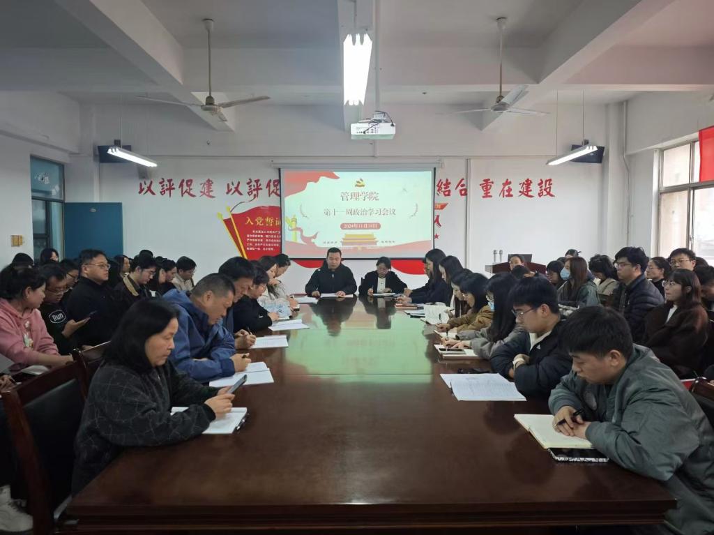 为贯彻落实习近平总书记关于就业的重要讲话精神,把握新一轮审核评估重点,确保高质量充分就业理念贯穿学生就业工作全过程。11月14日下午,管理学院在2号教学楼二楼会议室召开了2024-2025学年第一学期第11周政治学习专题会议。