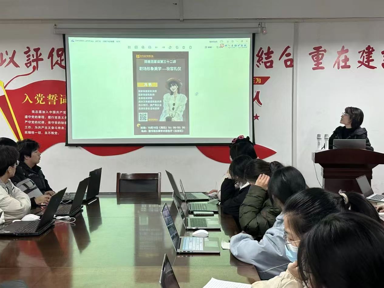 会上,谢老师从PS的基本功能入手,以实操的方式向同学们介绍了PS的基本操作,包括封面比例的设置、文件大小的控制、常用快捷键的运用、工具栏主要工具、液化功能以及海报制作整体协调度的重要性内容进行了详细介绍。