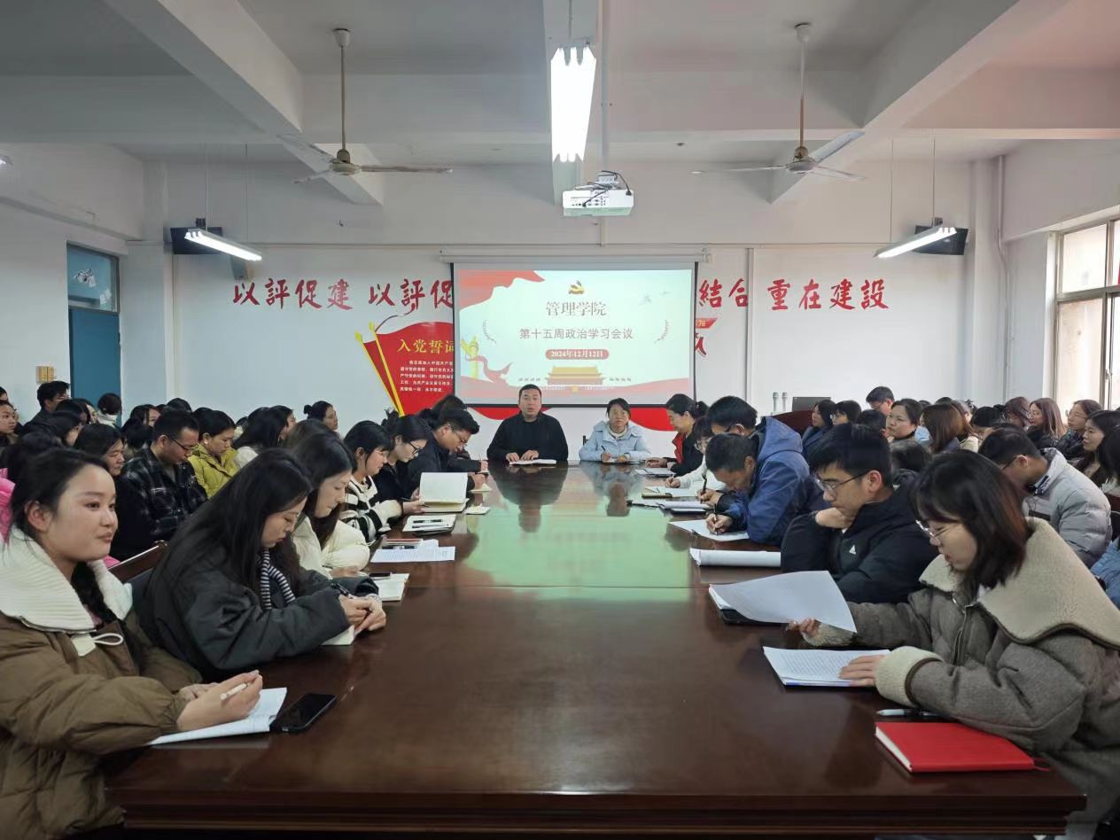 为深入学习习近平文化思想重要论述、领会习近平总书记重要指示精神以及切实开展自评自建工作,12月12日下午,我院在2号教学楼二楼会议室召开了2024-2025学年第一学期第15周政治学习专题会议。