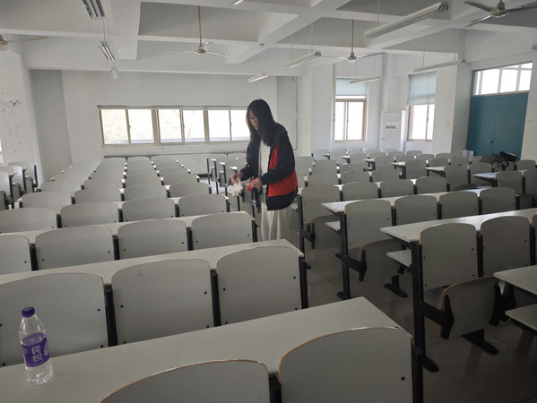 活动中,志愿者们进行分组分工,对教室的课间一分钟环保情况进行检查,并对于卫生情况不佳的教室进行记录和及时清理,同时将未关灯落锁的教室及时断电落锁。