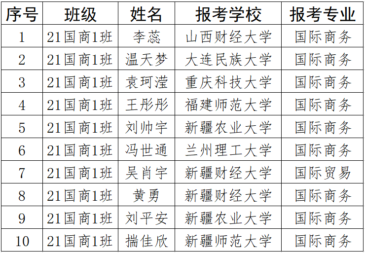 我院2025届国际商务专业共55人,报考研究生26人,过国家线12人,拟录取10人,过线录取率高达83.3%,研究生专业与本科专业高度吻合,专业匹配度达100%。在2025年全国硕士研究生招生考试中,21国商1班的考研成绩取得新突破,创下该专业设立以来的最佳成绩。