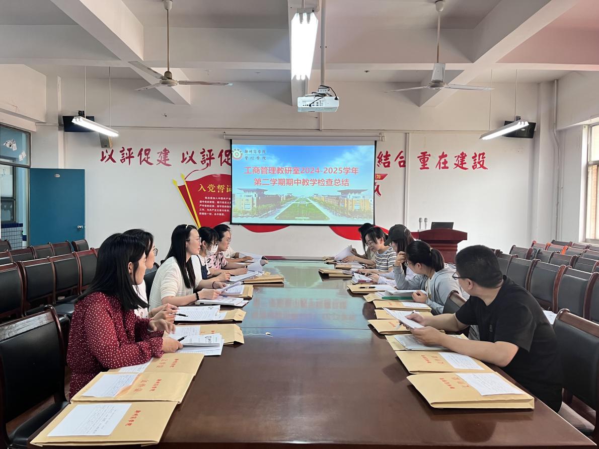 为确保教学质量不断提升,进一步规范教学管理工作,管理学院工商管理教研室于4月30日召开期中教学资料检查会议,教研室主任宁卫杰和工商管理教研室全体无课教师参加会议。