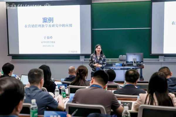 清华经管学院于春玲教授做了题为“案例在营销管理教学和研究中的应用”的主题演讲。秉持着“无案例,不教学”的理念,于教授系统梳理了案例教学在MBA、EMBA课程中的实践应用,通过“有道词典”等鲜活案例,生动阐释了STP战略、社交媒体营销、品牌价值创新等核心理论框架。在学术研究层面,于教授以中国企业案例为样本,探索品牌国际化、数字化营销等前沿议题,致力于“用案例讲好中国营销故事”。整场分享既有对教学细节的务实探讨(如案例筛选、课堂互动设计),亦包含对学术领域的深刻思考。
