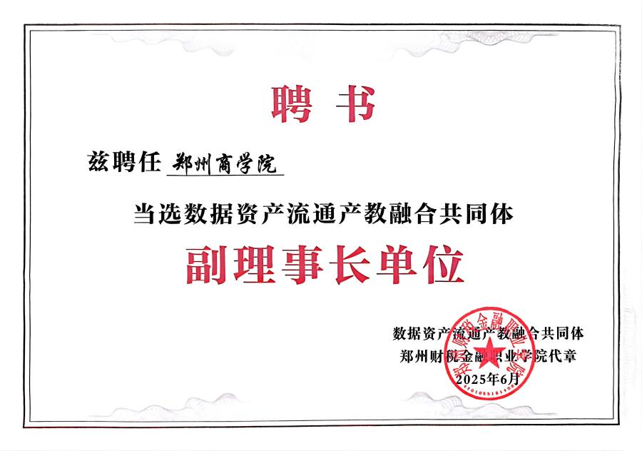6月14日,我院财务管理教研室主任李鸿春,骨干教师姜鑫参加了在郑州举行的数据资产流通产教融合共同体成立大会,点点官网被授予副理事长单位。本次会议由中电(郑州)数据产业有限公司、郑州航空工业管理学院和郑州财税金融职业学院共同牵头举办,来自90所兄弟院校、企业、科研院所的136名专家学者和业界精英出席会议。