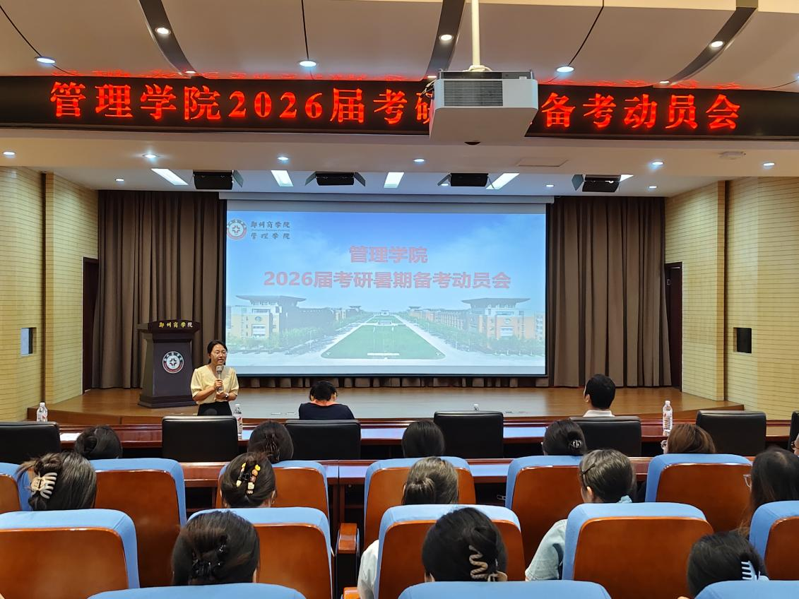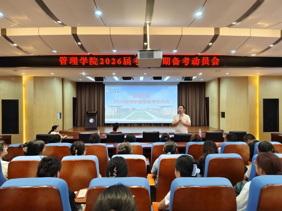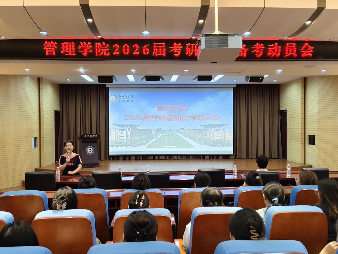 暑期是考研备考的黄金期,也是同学们厚积薄发、弯道超车的关键阶段,为了帮助2026届考研学生进一步明晰复习方向,解决备考困惑,同时做好安全保障,6月30日下午,我院在图书馆五楼报告厅召开了2026届考研暑期动员会。我院李晓翠院长、宋森书记、张卫丽副院长、各教研室主任、考研导师、相关辅导员以及2026届考研留校学生参加了会议,会议由考研教研室主任贾娇老师主持。
