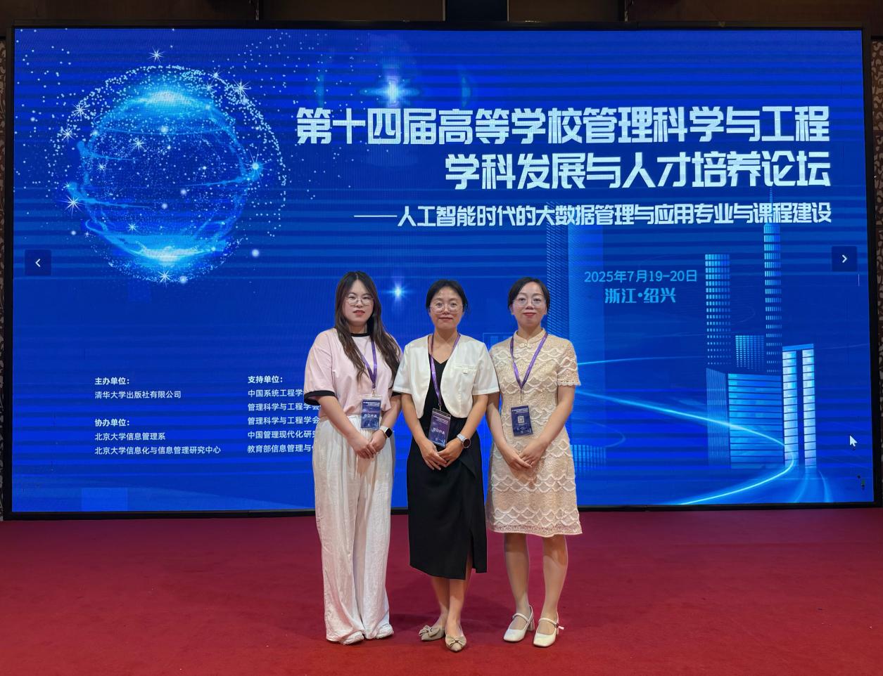 为深入探讨人工智能时代下大数据管理与应用专业及课程建设的前沿问题,深化高等学校教育改革,提升教育教学水平,促进大数据管理与应用专业的人才培养,我院院长李晓翠、工商管理教研室主任宁卫杰、教师陈萌于7月19日-20日赴浙江绍兴参加第十四届高等学校管理科学与工程学科发展与人才培养高峰论坛。