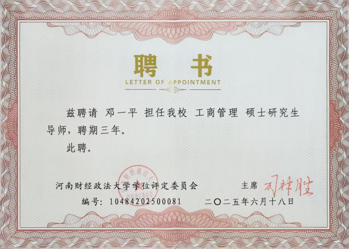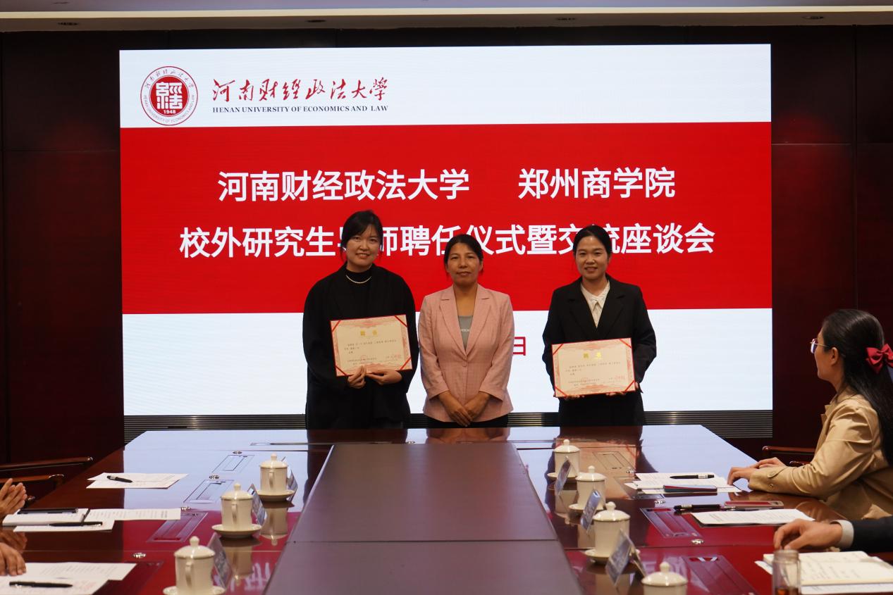 在导师聘任环节,蔺全丽副处长代表河南财经政法大学向taptap点点管理学院教师邓一平、黄信恒颁发硕士研究生导师聘书,将加入管理学部王永伟部长与研究生处杨凯瑞副处长团队,深度参与学术规划、论文指导等关键具体环节,助力研究生培养工作。