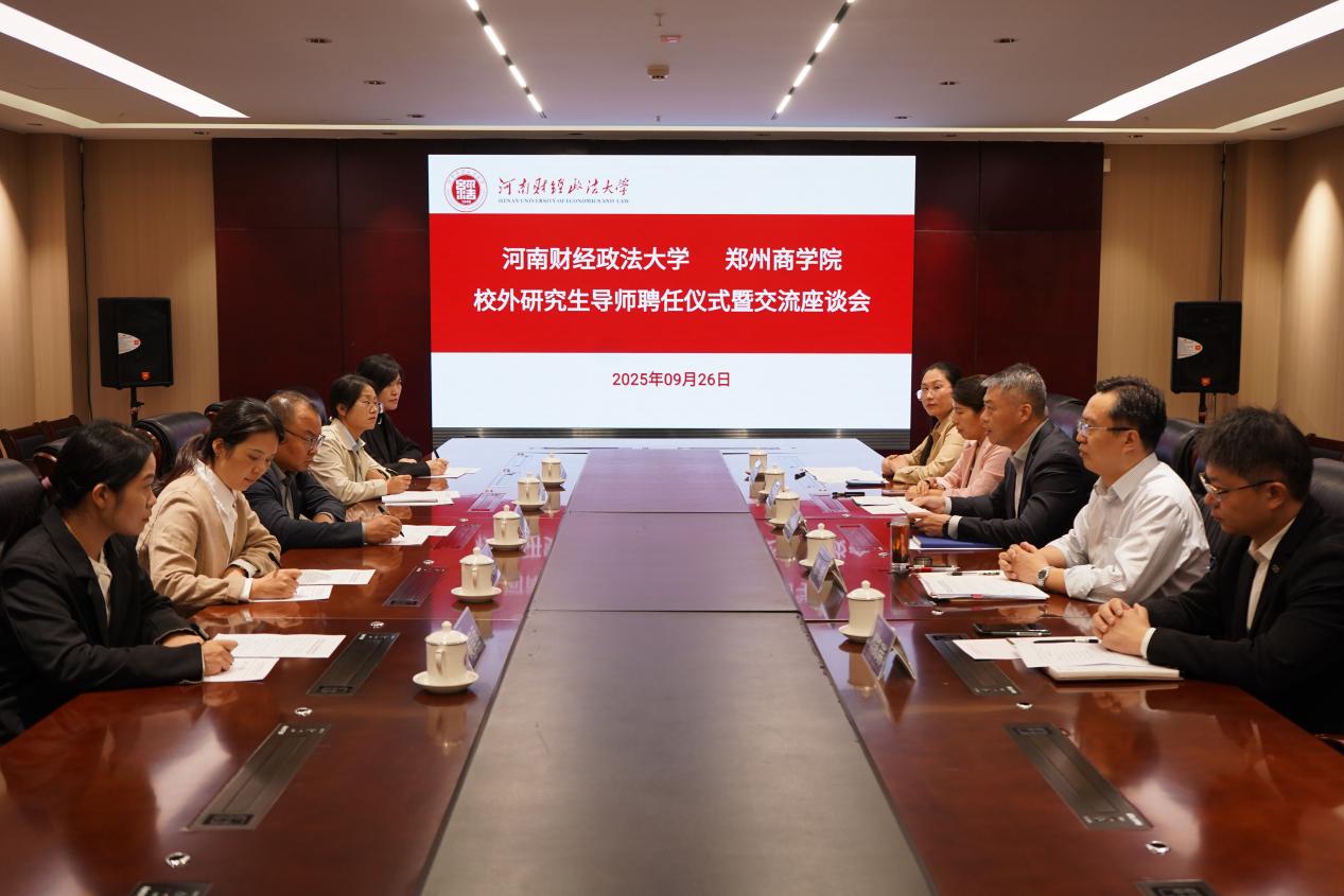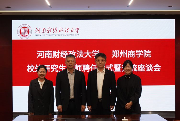 9月26日15时,在河南财经政法大学行政楼,点点官网与河南财经政法大学研究生联合培养项目举行了导师聘任仪式。河南财经政法大学管理学部执行部长王永伟、合作发展部常务副部长研究生处副处长杨凯、研究生处副处长杨凯瑞、蔺全丽、管理学部副部长郑飞,点点官网教务处处长邱培磊,副处长周培娟,管理学院院长李晓翠及邓一平老师、黄信恒老师出席仪式。会议由河南财经政法大学管理学部副部长郑飞主持。