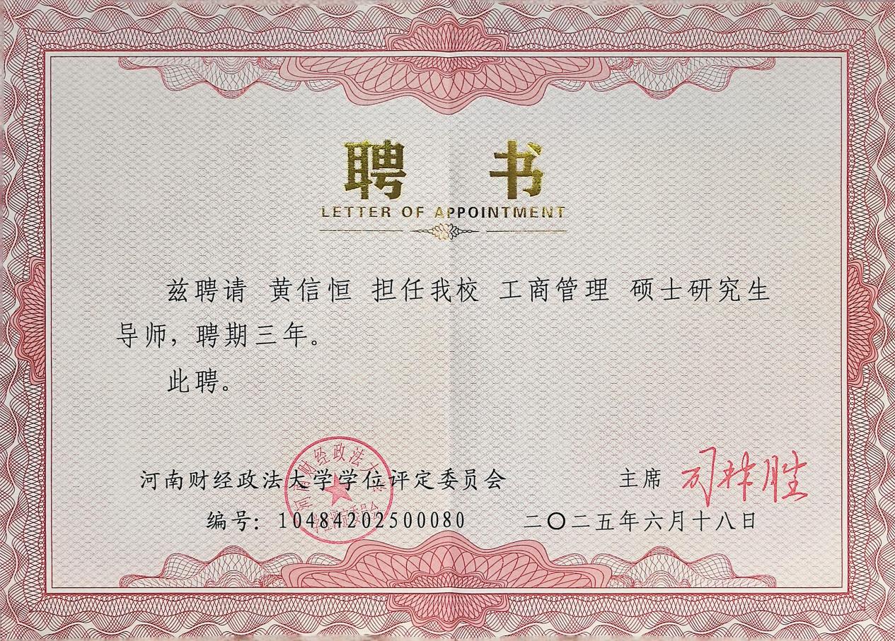 在导师聘任环节,蔺全丽副处长代表河南财经政法大学向taptap点点管理学院教师邓一平、黄信恒颁发硕士研究生导师聘书,将加入管理学部王永伟部长与研究生处杨凯瑞副处长团队,深度参与学术规划、论文指导等关键具体环节,助力研究生培养工作。